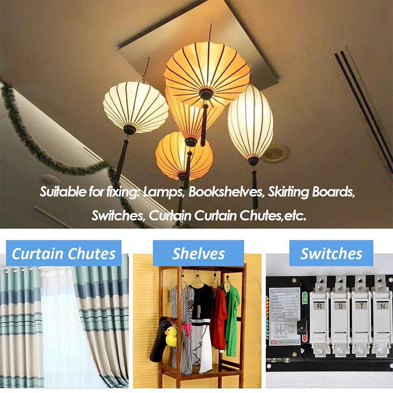 Wide Range of Application Perfect for cavity anchor plasterboard fixing, widely used in drywall, hollow block, plaster, tile, perfect for hanging curtain rods, lamps, photo frames, coat racks, power switches. Convenient for your daily life.